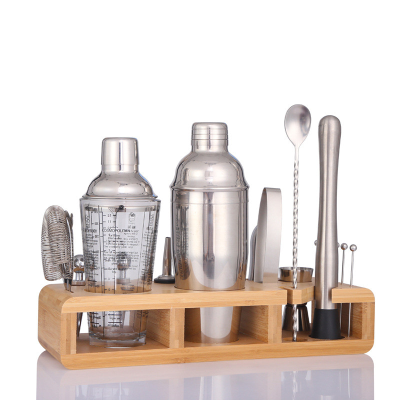 FDA Wooden Cocktail Set Holder Stand Bartender Kit Bar Accociate 8 Piece